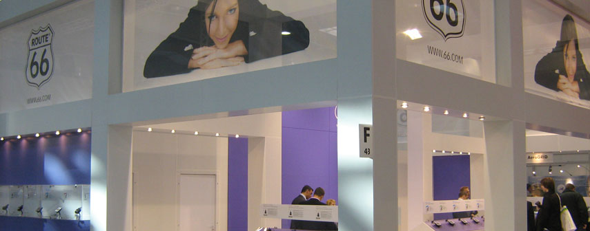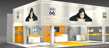 Voor Route 66, producent van navigatiesystemen, heeft FitsDesign een beursstand ontworpen voor de Cebit in Hannover.