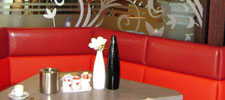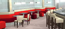 Harks FitnessBij Sportcentrum Harks in Geldrop heeft FitsDesign de horeca ruimte gerestyled en andere verlichting en nieuw meubilair voorzien. De vaste rode zitbank is een doorlopend element dat de ruimte samensmeedt tot één geheel. Op de glaspartij achter de bank zijn bloemdecoraties aangebracht. De bar is opnieuw bekleed en voorzien van sfeerverhogende ledverlichting.
